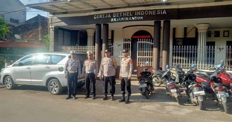 CIREBON - Menjaga kondusivitas wilayah hukum Polsek Arjawinangun aman kondusif serta memberikan rasa aman kepada umat Kristiani yang sedang ibadah, Anggota Polsek Arjawinnagun melaksanakan pengamanan kegiatan Ibadah Kebaktian di Gereja GBI Arjawinangun.Adapun langkah tersebut merupakan bentuk komitmen Polri dalam menjamin kebebasan beragama dan menjaga kerukunan umat beragama di wilayah hukum Polsek Arjawinangun. Minggu, 19/04/2026 Kapolsek Arjawinangun Polresta Cirebon mengatakan, bahwa pengamanan rutin di tempat-tempat ibadah, khususnya saat pelaksanaan Ibadah Minggu, merupakan bentuk pelayanan Polri kepada masyarakat dan Hal ini bertujuan untuk memastikan seluruh rangkaian ibadah berjalan lancar, aman, dan tanpa gangguan apapun sehingga tercipta Kamtibmas yang kondusif khususnya di Wilkum Polsek Arjawinangun.