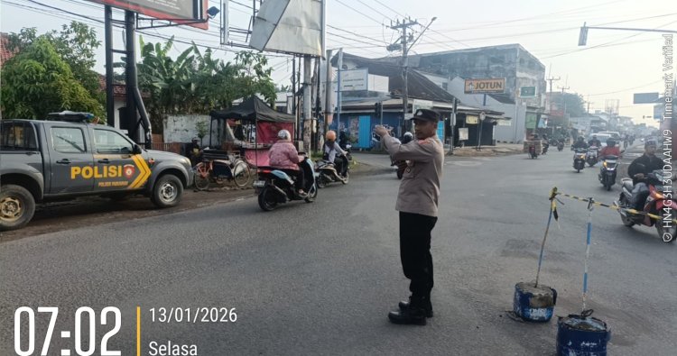 KAB. CIREBON – Dalam rangka meningkatkan pelayanan kepada masyarakat pengguna jalan raya, Personel Polsek Pabuaran Polresta Cirebon, rutin melakukan pengaturan lalu lintas pada jam-jam tawan di pagi hari melalui kegiatan Gatur Pagi. Pada Selasa pagi (13/01/2026), yang dilaksanakan di sejumlah titik rawan kepadatan kendaraan di wilayah hukum Polsek Pabuaran, Kegiatan yang dimulai pukul 06.00 hingga 07.30 Wib ini menjadi langkah preemtif dan preventif Anggota Kepolisian untuk memastikan kelancaran mobilitas masyarakat yang memulai aktivitasnya.