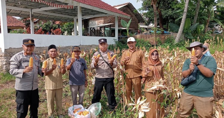 CIREBON - Polsek Dukupuntang mengikuti kegiatan panen jagung pipil BUMDes Berkah Jaya Desa Balad Kecamatan Dukupuntang Kabupaten Cirebon.