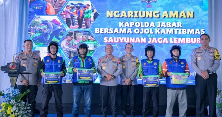 Sekitar 2.500 pengemudi ojek online (ojol) dari seluruh Jawa Barat berkumpul dalam agenda “Ngariung Aman” bersama Kapolda Jabar Irjen Pol. Rudi Setiawan di Bojongsoang - Buah batu, Jum'at (13/2/2026) Dalam momen tersebut, Kapolda Jabar Irjen. Pol. Rudi Setiawan meresmikan Bengkel Ojol dan Warung Ojol yang kini telah hadir di berbagai wilayah hukum Polda Jabar. Turut mendampingi Wakapolda Jabar Adi Vivid Agustiadi Bachtiar, Kabid Humas Polda Jabar Kombes Pol. Hendra Rochmawan S.I.K., M.H , Dirbinmas Kombes Pol. Wadi Sa’bani, Dirlantas Raydian Kokrosono, serta para Kapolres jajaran lainnya. Irjen Rudi mengatakan keberadaan Bengkel Ojol bukan sekadar fasilitas servis biasa. Bengkel ini diharapkan bisa dimanfaatkan oleh para pengemudi ojol maupun masyarakat yang mengalami kendala kendaraan di jalan. “Keberadaan bengkel ini agar dimanfaatkan untuk keluarga besar ojol, juga membantu masyarakat yang membutuhkan apabila kendaraan, khususnya roda dua, mengalami masalah di jalan, ” ujar Kapolda Jabar, Jum'at (13/2/2026) Ia menegaskan Warung Ojol dan Bengkel Ojol juga menjadi ruang silaturahmi antara Polri dan komunitas ojol. Menurutnya, pertemuan tersebut bukan hanya ajang kumpul, tetapi memperkuat semangat kebersamaan. “Hari ini kita berkumpul bukan sekadar untuk bersilaturahmi, tetapi untuk menguatkan semangat sauyunan jaga lembur. Sauyunan berarti bersama-sama, saling menguatkan dan menopang. Jaga lembur berarti menjaga kampung dan lingkungan kita, ” katanya. Kapolda Jabar menyebut ojol memiliki peran strategis dalam menjaga keamanan dan ketertiban masyarakat (kamtibmas). Setiap hari mereka berada di jalan, bertemu berbagai lapisan masyarakat, bahkan masuk hingga ke gang-gang kecil. “Rekan-rekan ojol bukan hanya pengantar penumpang atau barang, tetapi juga mata dan telinga di lapangan. Dalam konteks itu, peran ojol kamtibmas menjadi sangat strategis, ” tegasnya. Menjelang Ramadan, aktivitas masyarakat diprediksi meningkat dan berpotensi menimbulkan gangguan kamtibmas maupun kepadatan lalu lintas. Karena itu, Irjen Rudi mengajak seluruh ojol memperkuat komitmen menjaga kondusivitas Jawa Barat. Ia juga mengingatkan agar keselamatan menjadi prioritas utama saat bekerja di jalan. “Tidak ada orderan yang lebih penting daripada keselamatan jiwa. Pulang dengan selamat ke rumah, bertemu keluarga dalam keadaan utuh, itu yang paling utama, ” ujarnya. Kapolda Jabar berpesan agar para ojol tetap tertib, santun, tidak ugal-ugalan, dan tidak mudah terprovokasi meski berasal dari berbagai komunitas dan serikat. “Jadilah contoh. Ketika ojol tertib, masyarakat akan ikut tertib. Ketika ojol santun, masyarakat akan merasa aman. Dan ketika ojol peduli, maka Jawa Barat akan semakin kuat, ” tuturnya. Kegiatan tersebut juga diisi dengan penyerahan sembako, penyematan pin keselamatan berlalu lintas, serta pemberian helm dan atribut Ojol Kamtibmas sebagai simbol amanah.