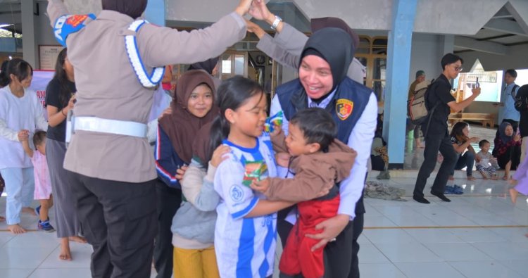 Kabid Humas Polda Jabar Kombes Pol. Hendra Rochmawan, S.I.K., M.H. menyampaikan bahwa kehadiran Polwan di lokasi pengungsian merupakan wujud kepedulian Polri terhadap masyarakat, khususnya anak-anak.