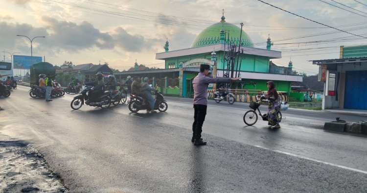 Cirebon – Dalam rangka memberikan pelayanan prima kepada masyarakat, personel Polsek Losari Polresta Cirebon melaksanakan kegiatan Pengaturan Lalu Lintas pada jam rawan pagi hari, Jumat (13/02/2026), mulai pukul 06.00 WIB hingga selesai. Kegiatan tersebut dipimpin langsung oleh Kapolsek Losari AKP Sugiono, S.H., M.H.