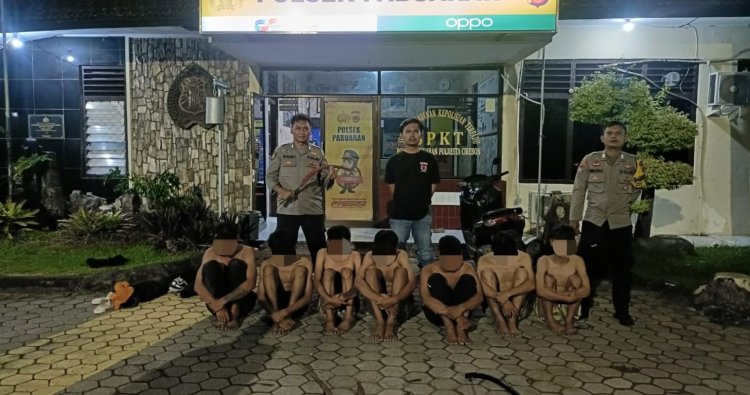 Cirebon - Petugas Polsek Pabuaran mengamankan 7 pemuda yang diduga merupakan anggota geng motor di Jalan Buyut Roda termasuk Desa Jatiseeng Kec.Ciledug Kab.Cirebon, Jumat (9/1/2026) pukul 01.00 WIB. Kapolresta Cirebon Kombes Pol Imara Utama S.H, S.I.K, M.H, mengatakan, tujuh anggota geng motor tersebut berinisial DM (24), KA (18), RS (16), SH (19), IR (22), ZDA (18), dan MR (16). Mereka tercatat sebagai warga Kabupaten Cirebon. "Kami juga mengamankan barang bukti senjata sajam berupa panah beserta anak panah, Clurit 2 buah, 1 buah samurai, dan 1 buah golok, 4 unit sepeda motor dan lainnya, " katanya. Ia mengatakan, para anggota geng motor beserta seluruh barang bukti tersebut masih menjalani pemeriksaan intensif di Mapolsek Pabuaran. Dari hasil pemeriksaan sementara diduga para gank motor itu hendak tawuran. "Awalnya, kami mendapatkan laporan mengenai keberadaan sekumpulan pemuda yang diduga membawa senjata sajam dan hendak tawuran. Kami langsung mendatangi dan menggeledah mereka lalu menemukan senjata sajam, sehingga diamankan, " pungkasnya.