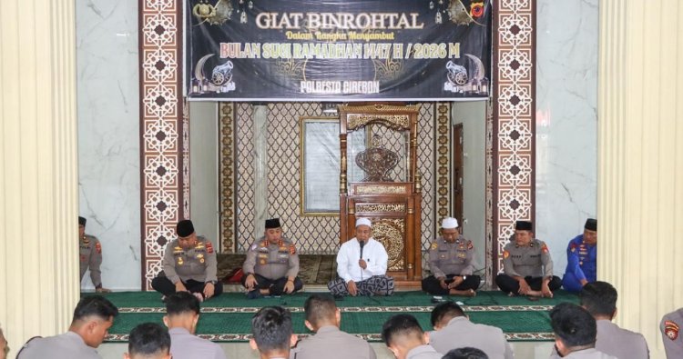 CIREBON - Polresta Cirebon menggelar kegiatan Pembinaan Rohani dan Mental (BINROHTAL) dalam rangka menyambut Bulan Suci Ramadhan 1447 H/2026 M, Kamis (19/2/2026). Kegiatan tersebut dilaksanakan di Masjid Syarif Hidayatuloh, Asrama Polisi Kaliwadas, Kecamatan Sumber, Kabupaten Cirebon, dan diikuti para pejabat utama, kapolsek jajaran, perwira, anggota, serta ASN.