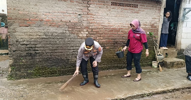 Kegiatan kerja bakti tersebut dipimpin langsung oleh Kapolsek Lemahabang Kompol Dr. Yuliana, S.AB., M.Si. sebagai bentuk kepedulian dan respons cepat terhadap warga yang terdampak banjir akibat curah hujan tinggi pada malam sebelumnya.