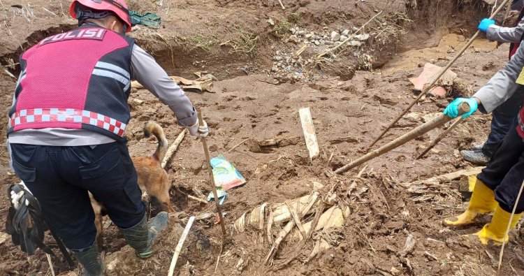 Unit K9 Direktorat Samapta Polda Jawa Barat terus melakukan kegiatan penyisiran di lokasi bencana longsor wilayah Kabupaten Bandung Barat (KBB), pada Sabtu, 31 Januari 2026. Kegiatan ini merupakan bagian dari upaya pencarian korban yang dilakukan secara berkelanjutan.