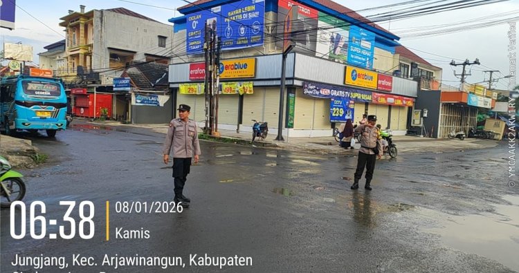 Arjawinangun, Kabupaten Cirebon – Dalam rangka memberikan pelayanan prima kepada masyarakat pada pagi hari, personel Polsek Arjawinangun Polresta Cirebon melaksanakan kegiatan pengaturan lalu lintas di perempatan BuKaban Jungjang, Desa Jungjang, Kecamatan Arjawinangun, Kabupaten Cirebon, Kamis (8/1/2026).